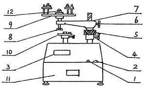 利用小量值力傳感器測(cè)量精度高、穩(wěn)定性好的特點(diǎn),作為測(cè)量量?jī)x測(cè)力的基準(zhǔn)。加上多功能的夾具,來適應(yīng)裝夾多種量?jī)x,以達(dá)到應(yīng)用范圍廣的目的。再加上底座,調(diào)整裝置等,則組成一種較為理想的量?jī)x測(cè)力計(jì),其具體結(jié)構(gòu)見圖。
