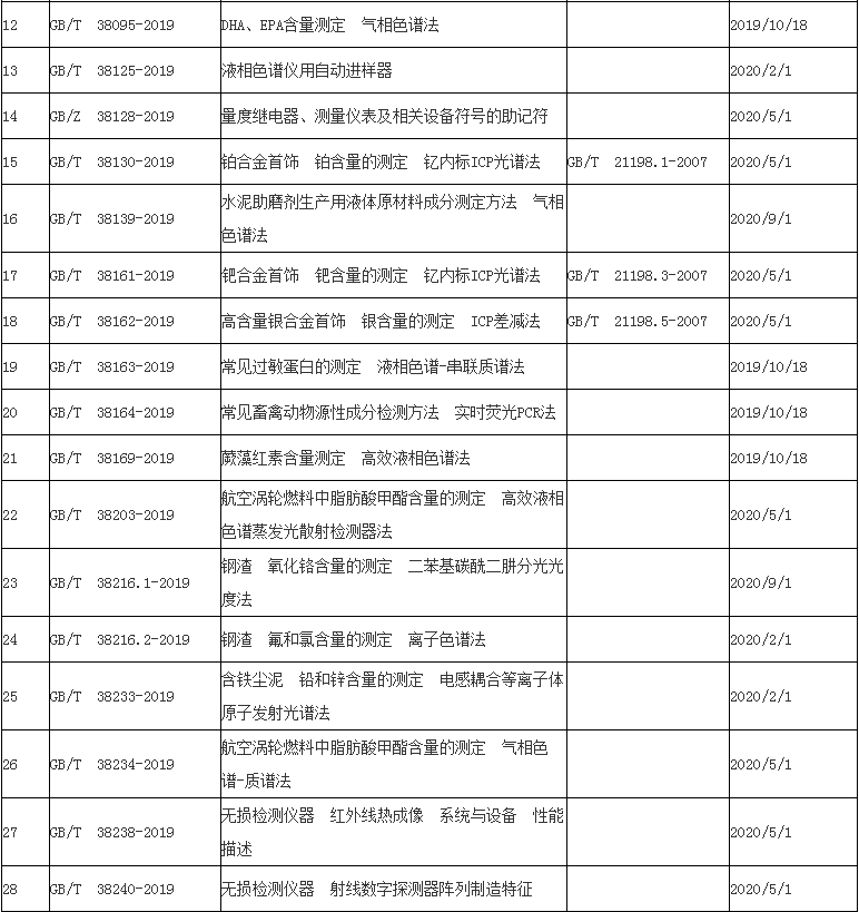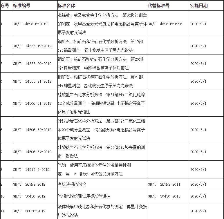 在343項國家標(biāo)準(zhǔn)中有多項涉及儀器儀表分析檢測標(biāo)準(zhǔn),如電感耦合等離子體原子發(fā)射光譜法、原子熒光光譜法、電感耦合等離子體質(zhì)譜法、傅里葉變換紅外光譜法等。部分信息如下: