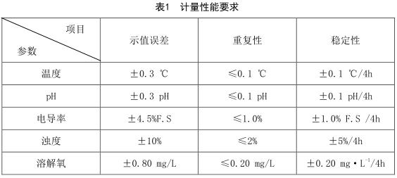 儀器的計量性能要求參見表1:
