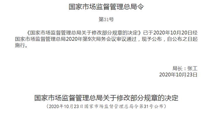 為了全面落實(shí)黨的十九屆三中全會(huì)審議通過的《中共中央關(guān)于深化黨和國家機(jī)構(gòu)改革的決定》《深化黨和國家機(jī)構(gòu)改革方案》和十三屆全國人大一次會(huì)議批準(zhǔn)的《國務(wù)院機(jī)構(gòu)改革方案》,確保行政機(jī)關(guān)依法履行職責(zé),進(jìn)一步推進(jìn)簡政放權(quán)、放管結(jié)合、優(yōu)化服務(wù)改革,市場監(jiān)管總局決定對(duì)30件部門規(guī)章的部分條款予以修改。